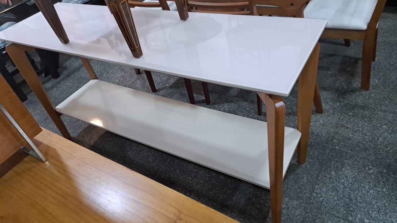 Aparador tampo de vidro laqueado madeira de cedro R$ 1.900 T. 2287-7296