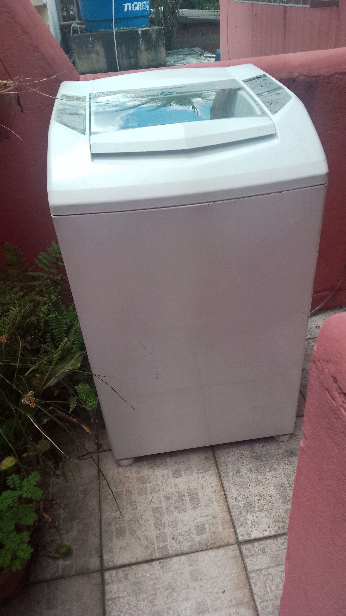 Marca Brastemp 7 kg com defeitos no botão de ligar e no tambor